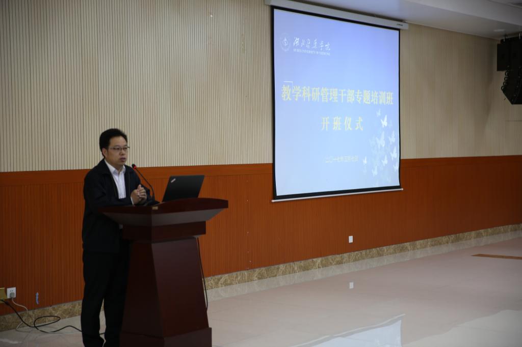 5月7日上午,我校教学科研管理干部培训班在科教综合大楼一楼多功能厅举行。副校长魏文芳、教务处处长李文春、副处长陈飞出席开班仪式,本次活动有来自全校各教学单位的200余名教学科研管理干部参加,开班仪式由教师教学发展中心李国华主任主持。