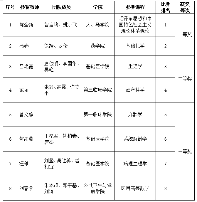 首届湖北医药学院教学创新大赛已于1月13日圆满结束,现将比赛结果公示如下: