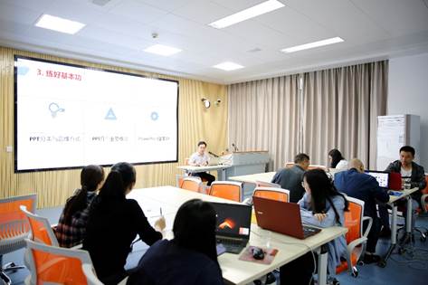 最后,袁文宣布开班仪式结束,培训正式开始。李国华根据六里坪镇小学教师教育信息化能力的实际情况,制定了为期两天的培训计划,培训主要围绕PPT课件创作能力提升以及智能时代的信息化教学手段运用展开。参训教师积极主动,兴趣浓厚,培训氛围轻松愉快,老师们真正地融入培训学习,从教师角色迅速转变为“学生”角色,再次提升自身综合能力素养。